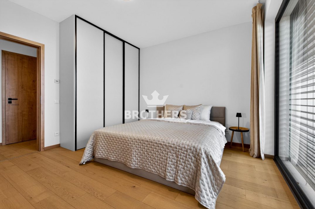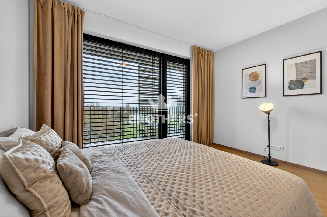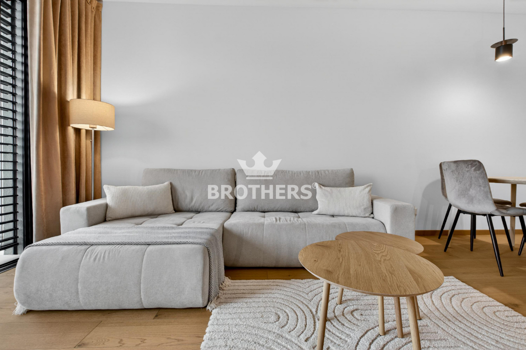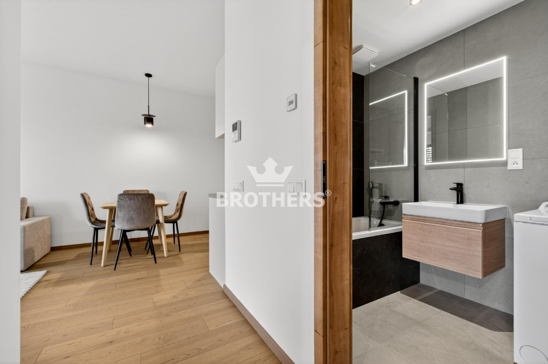 Byt je veľmi slnečný, má perfektnú dispozíciu a je zariadený štýlovým nábytkom na mieru vrátane kuchynskej linky so zabudovanými spotrebičmi. V byte je stropné chladenie a podlahové kúrenie. Okná sú hliníkové veľkoformátové s tepelno-akustickým izolačným trojsklom a externými žalúziami s elektrickým pohonom. Podlaha v interiéri je dubová prírodná dýha a na loggii je gresová dlažba. K bytu prislúcha pivničná kobka umiestnená na rovnakom podlaží a parkovacie miesto v podzemnej garáži za príplatok. Bytový dom bol skolaudovaný v r. 2024. Budova má vypracovaný energetický certifikát triedy A.
