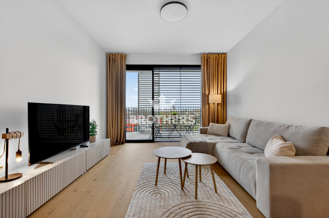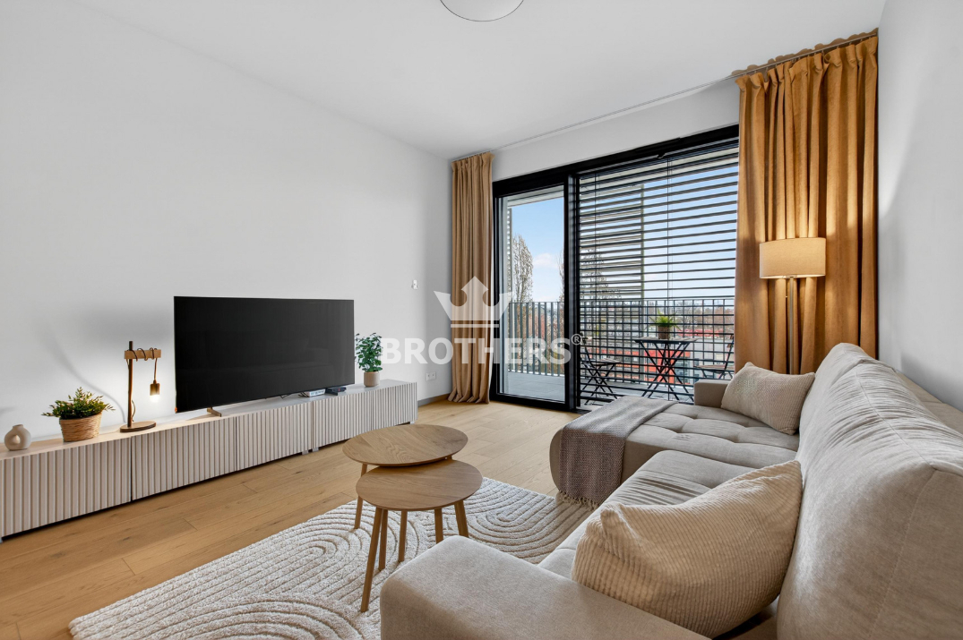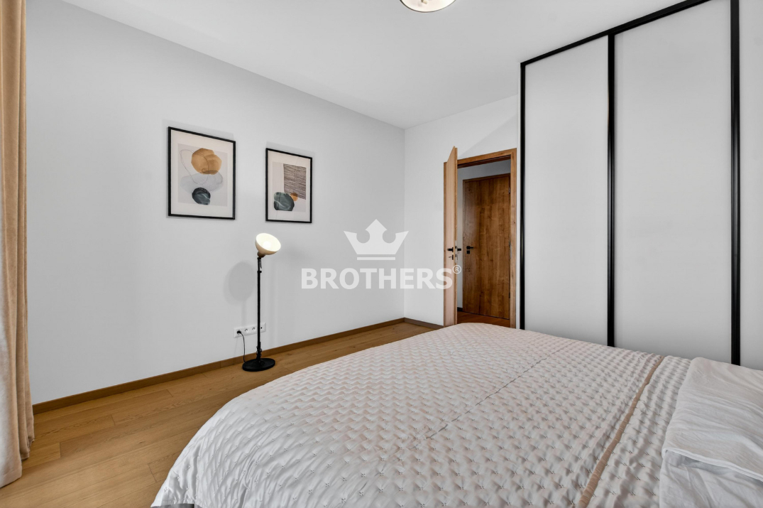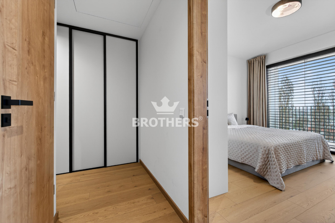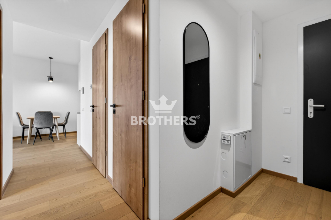 Byt je veľmi slnečný, má perfektnú dispozíciu a je zariadený štýlovým nábytkom na mieru vrátane kuchynskej linky so zabudovanými spotrebičmi. V byte je stropné chladenie a podlahové kúrenie. Okná sú hliníkové veľkoformátové s tepelno-akustickým izolačným trojsklom a externými žalúziami s elektrickým pohonom. Podlaha v interiéri je dubová prírodná dýha a na loggii je gresová dlažba. K bytu prislúcha pivničná kobka umiestnená na rovnakom podlaží a parkovacie miesto v podzemnej garáži za príplatok. Bytový dom bol skolaudovaný v r. 2024. Budova má vypracovaný energetický certifikát triedy A.