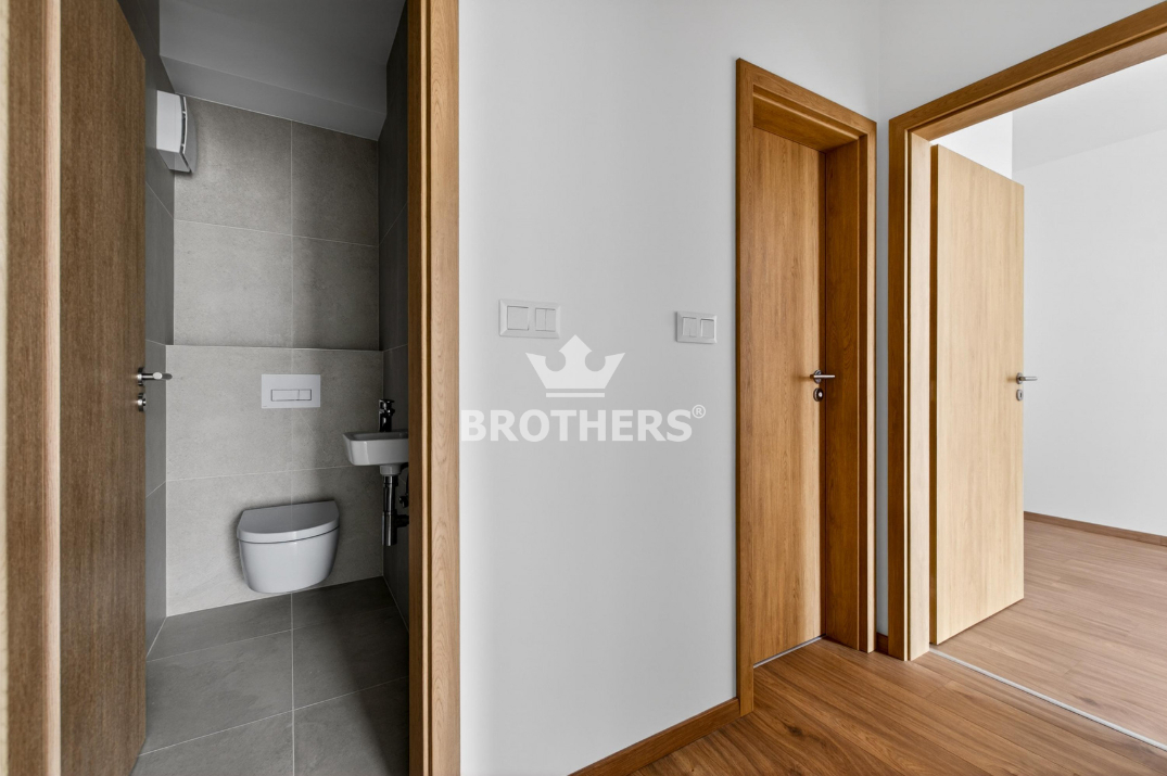 Byt je veľmi tichý, je orientovaný do privátneho vnútrobloku smerom na les. Vďaka svojej juhozápadnej orientácii je príjemne presvetlený počas celého dňa. Má praktickú dispozíciu, ktorá pozostáva zo vstupnej chodby, kuchyne spojenej s obývačkou a jedálenskou časťou, izby, spálne so šatníkom, kúpeľne s vaňou, samostatnej toalety a balkóna, ktorý je prístupný z obidvoch miestností. Podlahová plocha bytu je 71,04 m2 a plocha balkóna je 11,85 m2. V rámci nadštandardu boli realizované exteriérové žalúzie s elektrickým pohonom Somfy, ktoré vám pomôžu ušetriť náklady na klimatizáciu v lete a náklady na vykurovanie v zime. Vykurovanie je ústredné, príprava TÚV je centrálna. K bytu prislúcha pivničná kobka s výmerou 2,53 m2 a dva parkovacie státia v garáži za príplatok. Bytový dom bol skolaudovaný v r. 2025. Budova má vypracovaný energetický certifikát triedy A.