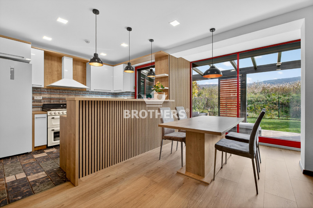 Ponúkame Vám exluzívne na predaj krásny, trojpodlažný 5-izbový rodinný dom so záhradou v obci Marianka. Tento rodinný dom sa nachádza v novej tichej uličke s domami radového typu situovanej len pár desiatok metrov od Záhorskej Bystrice. Dom má dve nadzemné a jedno podkrovné podlažie a je prostredným z troch domov označený ako samostatná 5-izbová bytová jednotka s kompletným príslušenstom. Dom je postavený z kvalitných materiálov a kompletne zariadený kvalitným moderným nábytkom na mieru.