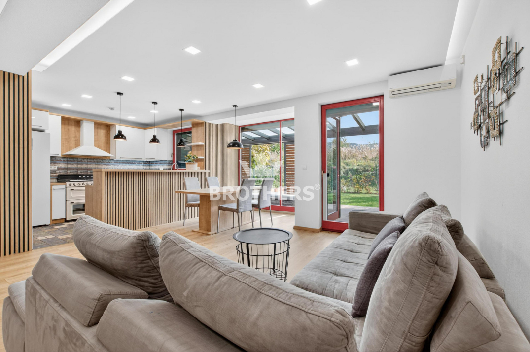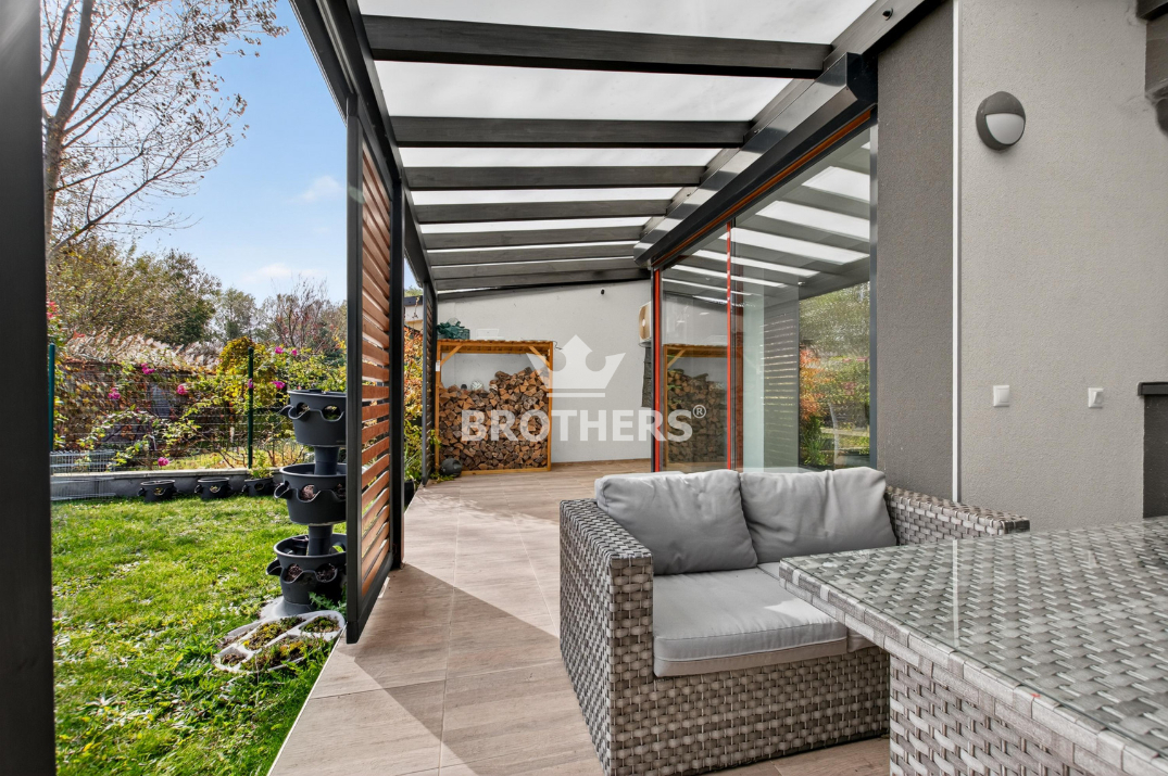 Dom bol skolaudovaný v roku 2017 a nachádza sa na pozemku s výmerou 245 m2 (nádvorie má výmeru 68 m2, zastavaná plocha domu 99 m2 a záhrada 78 m2). Úžitková plocha domu je 224 m2. Vykurovanie je podlahové, teplovodné, vykurovací kotol je plynový so zásobníkom na ohrev TÚV. V obývacej izbe sú liatinové krbové kachle. Kuchyňa je zariadená modernou kuchynskou linkou do tvaru U so zabudovanými spotrebičmi a voľne stojacou chladničkou. Všetky izby sú klimatizované. V dome je podomietkový rozvod klimatizácie a vonkajšia klimatizačná jednotka je umiestnená na streche. Dom má garáž pre 2 autá a takisto vonkajšie parkovacie miesta pre 2 autá. Terasa za domom pri vstupe na záhradu je zastrešená. Záhrada má výmeru 78 m2.